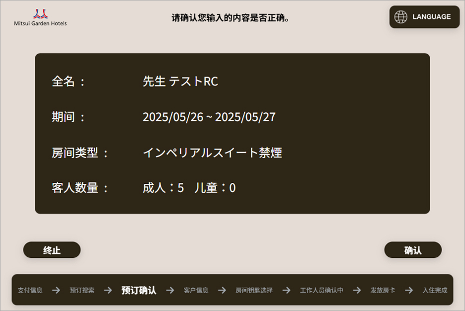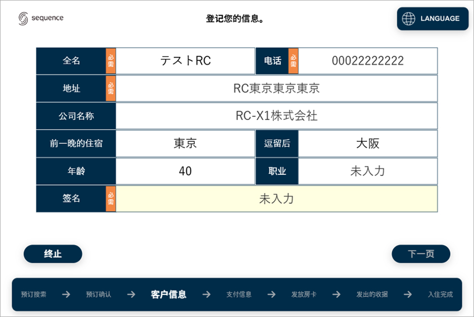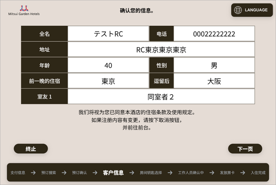确认住客信息 →【下一页】