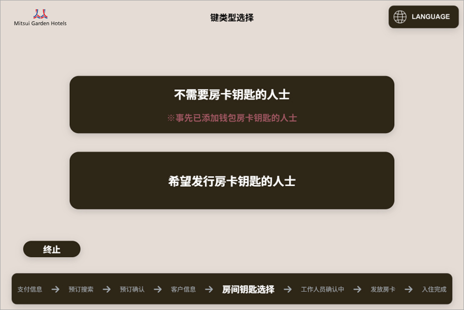 若已添加 Wallet Room Key,选择【不需要房卡钥匙的人士】(如需实体房卡,请根据指引领取)