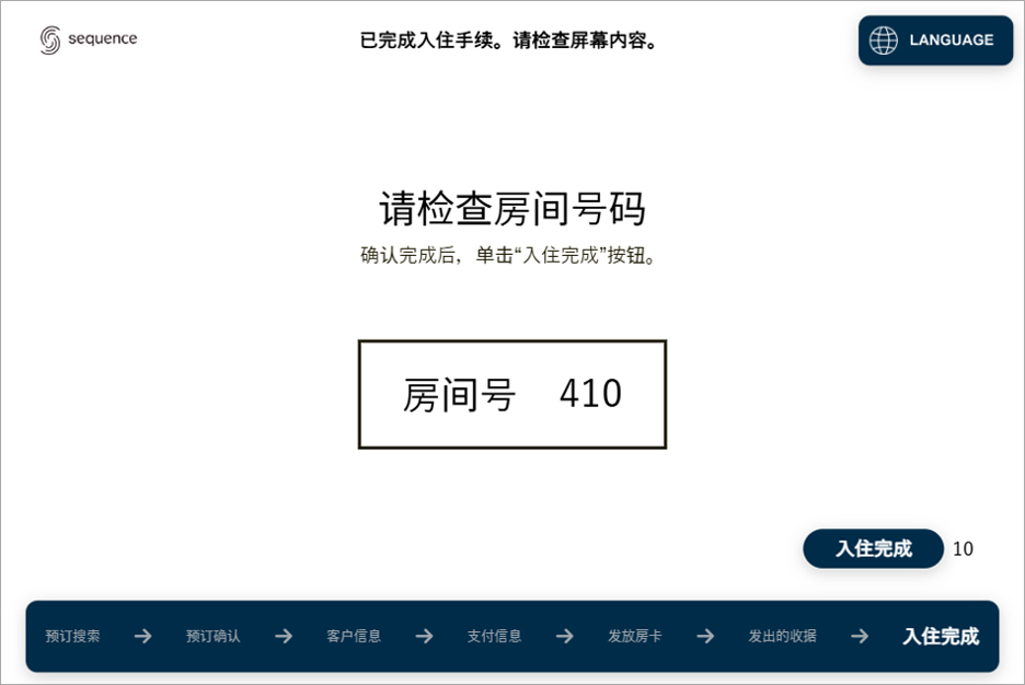 (入住sequence饭店时,可在“入住平板”上完成支付。)