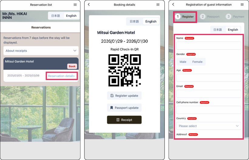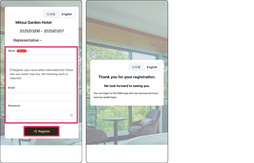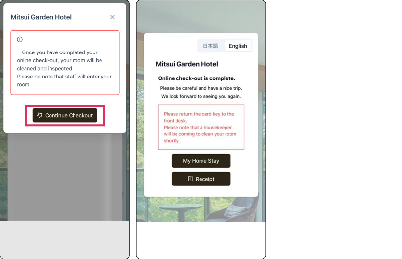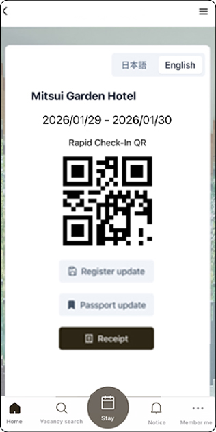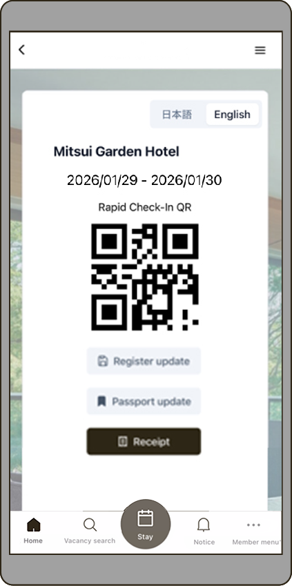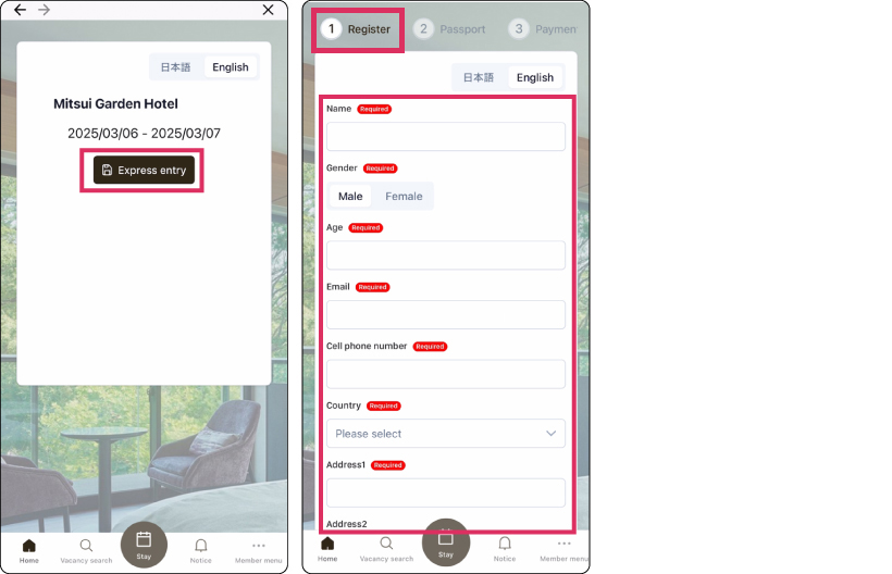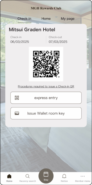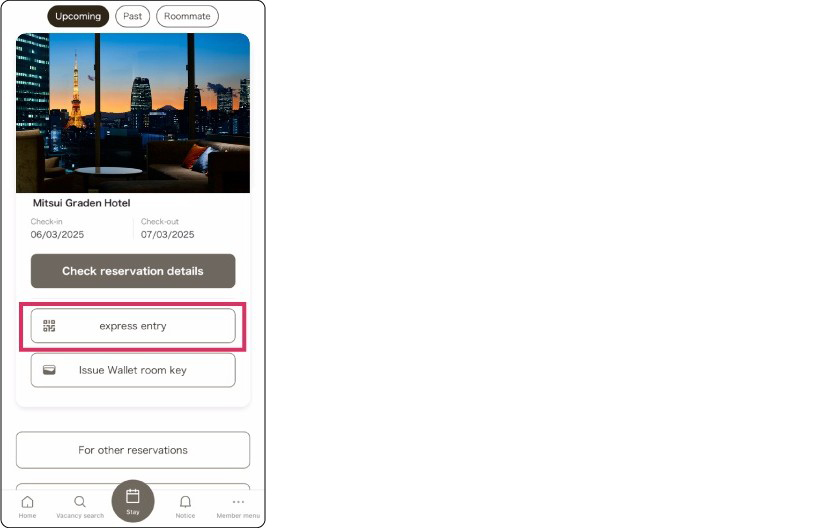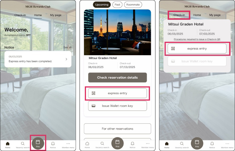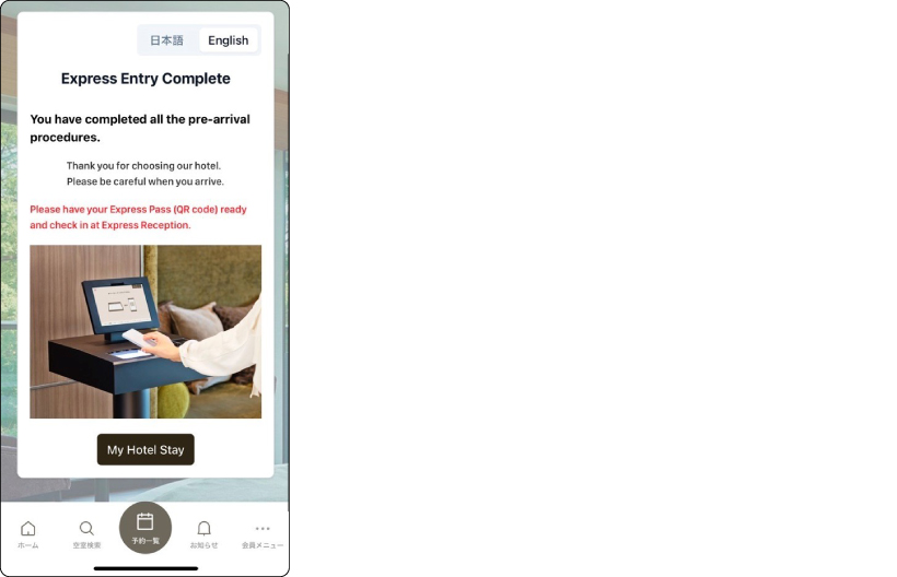 "Express Entry" can be completed through the "My Hotel Stay" Guest Portal on the app or website.